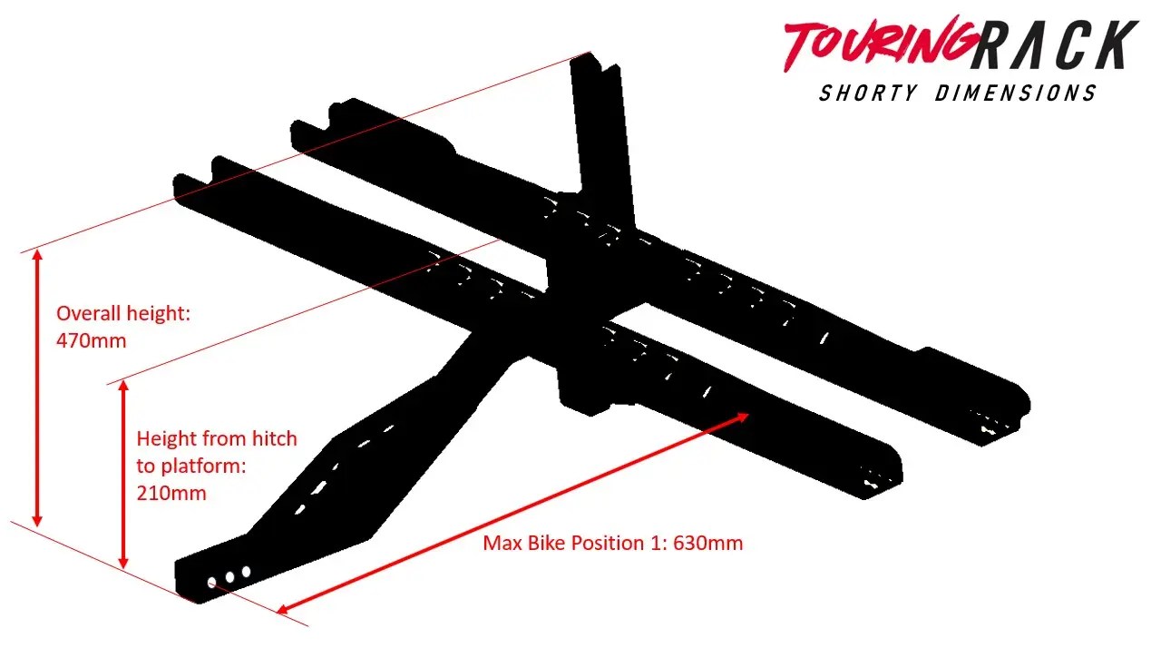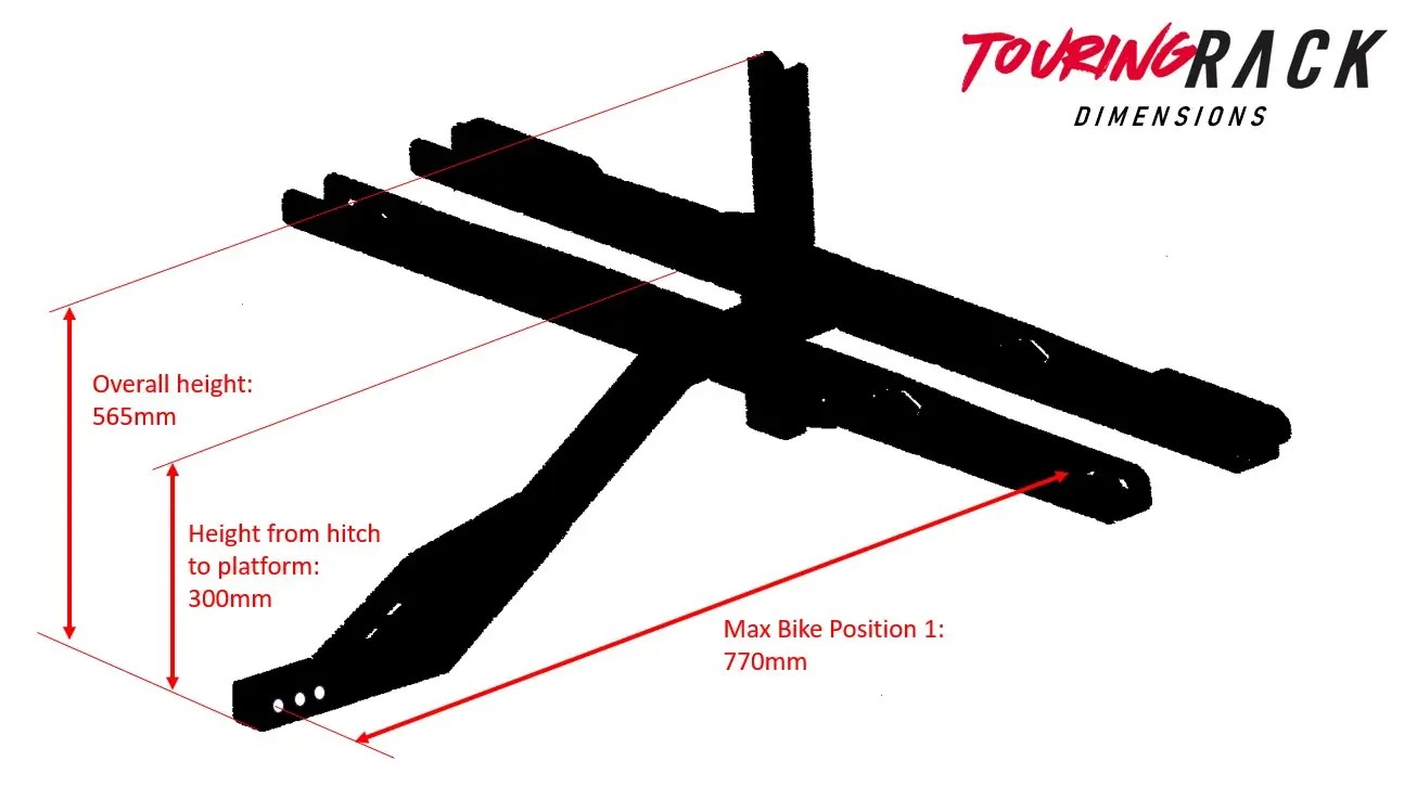 Touring: The touring rack suits vehicles with a canopy and a undercut hitch and a spare tyre.